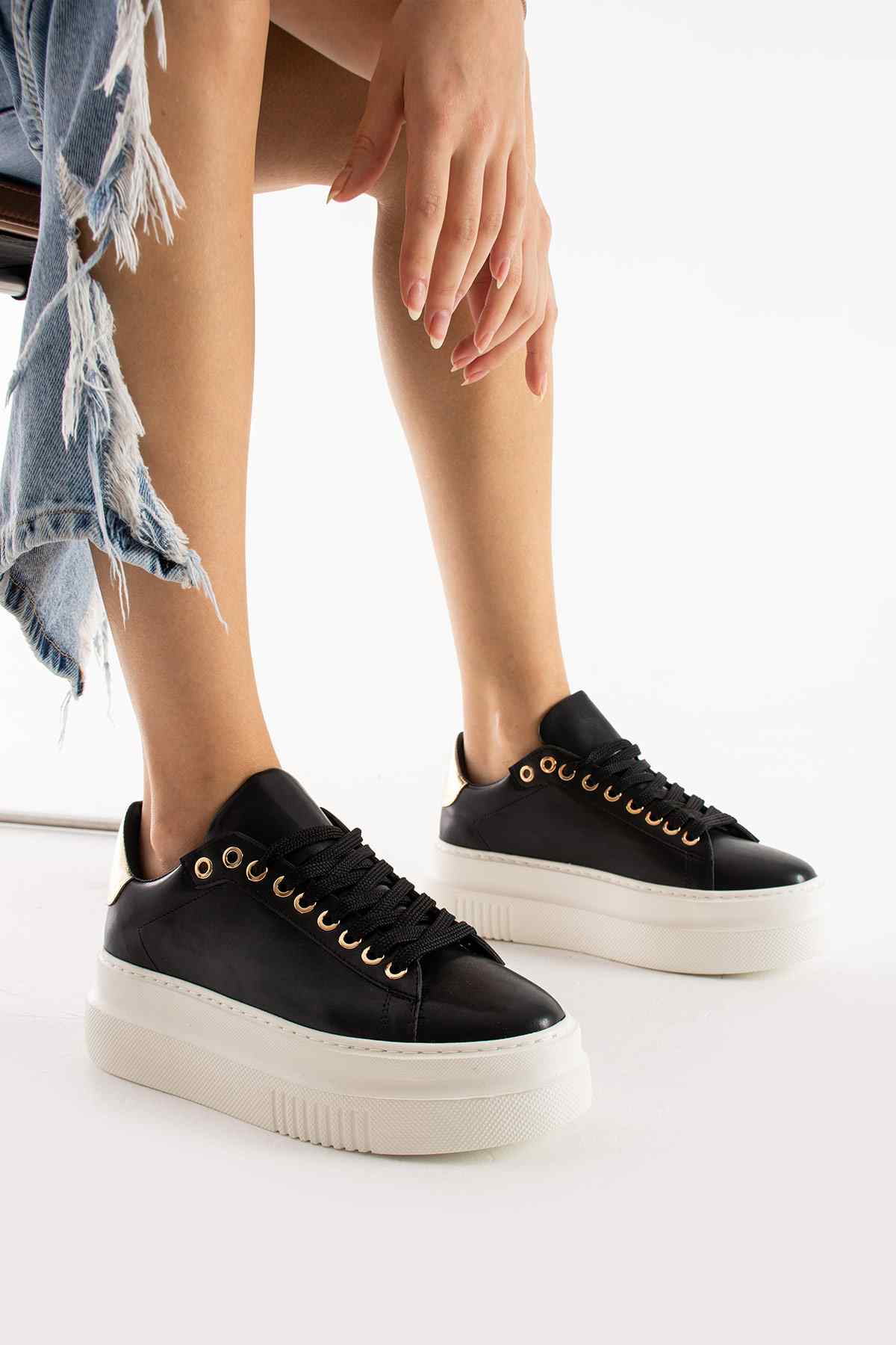 Renk: Siyah ve altın detaylarla şık tasarım