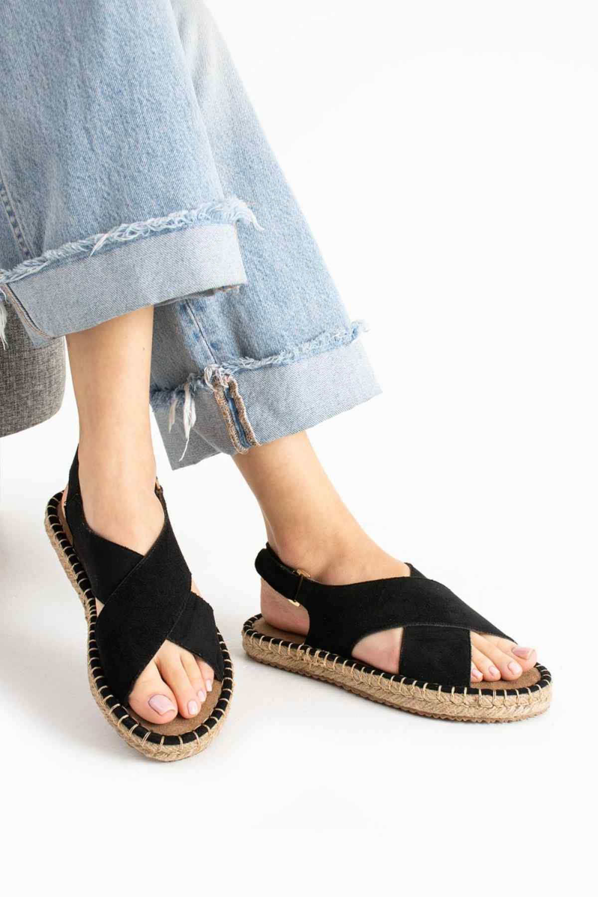 Çapraz Bant Detaylı Siyah Renkli Süet Sandalet