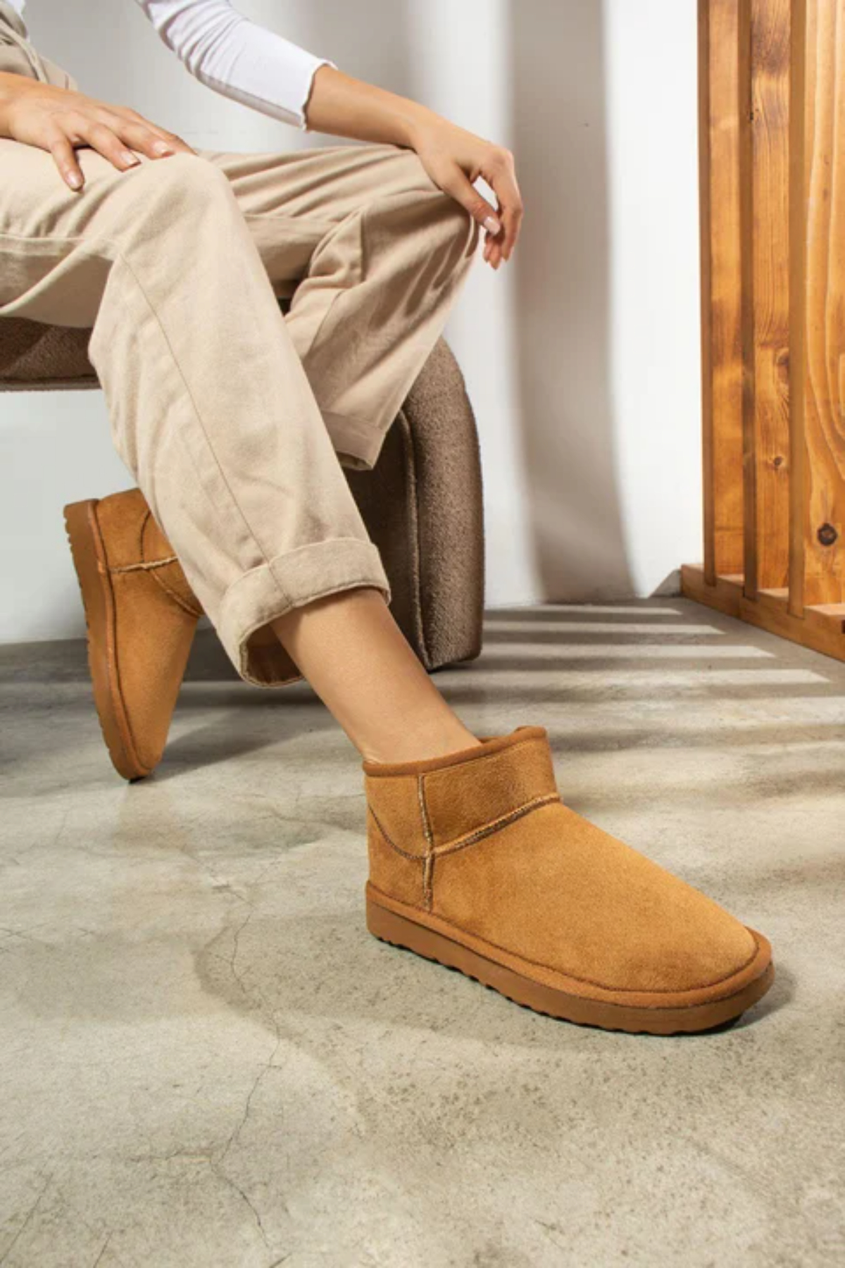 İçi Yünlü Taba Renkli Mini Süet Bot