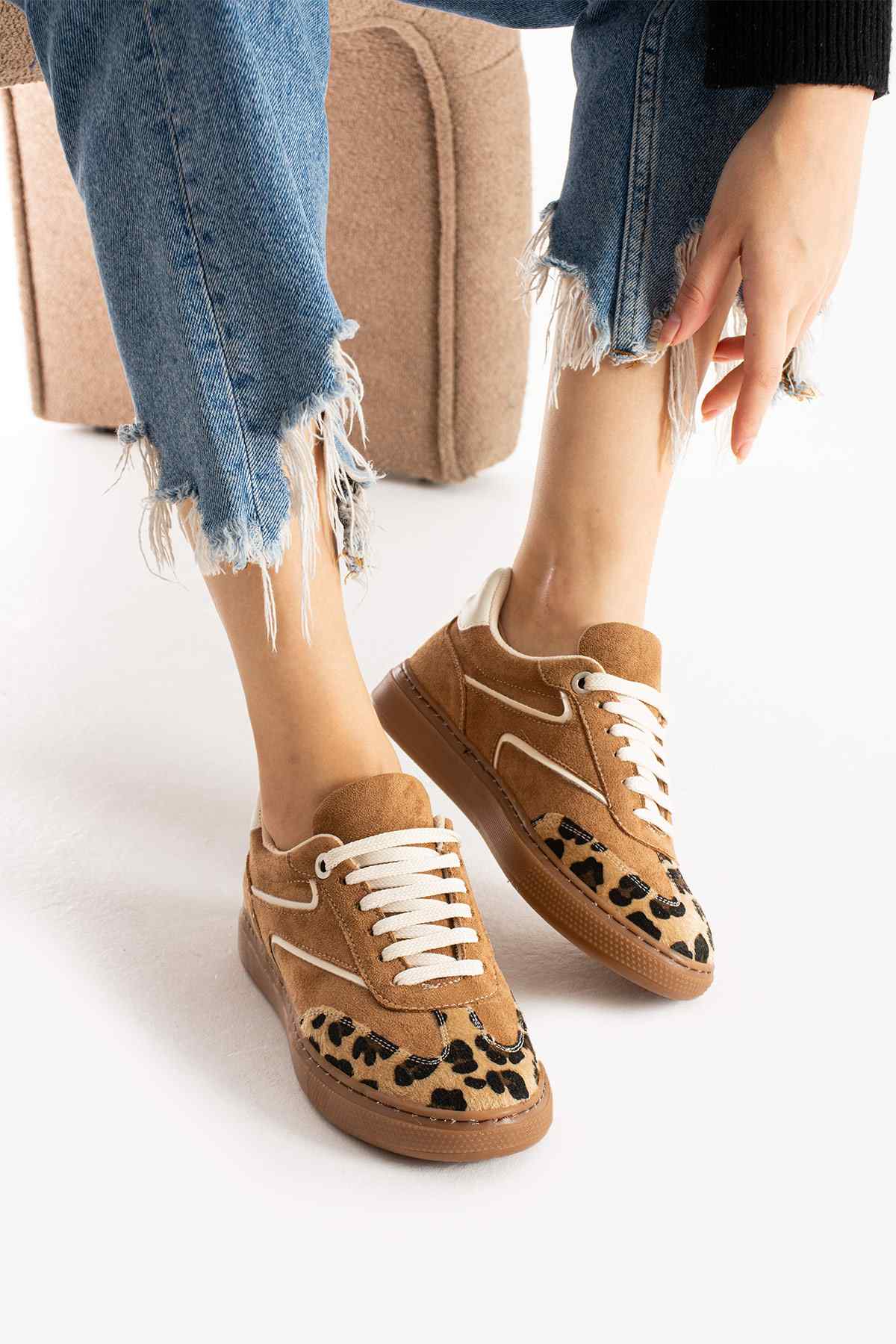 Malzeme: Taba renkli ve leopar desenli kumaş kombinasyonu